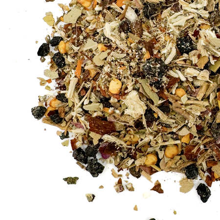 Elderberries, cayenne flakes, echinacea root*, marshmallow root*, eucalyaptus